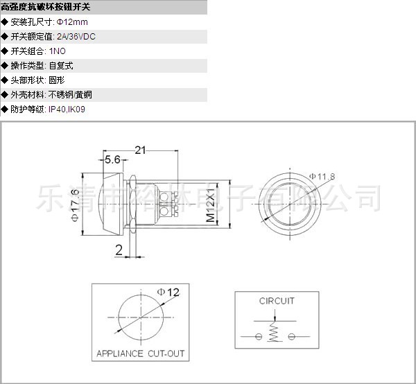 平头金属按钮开关直径12mm 厂家直销 YL1-12-A1