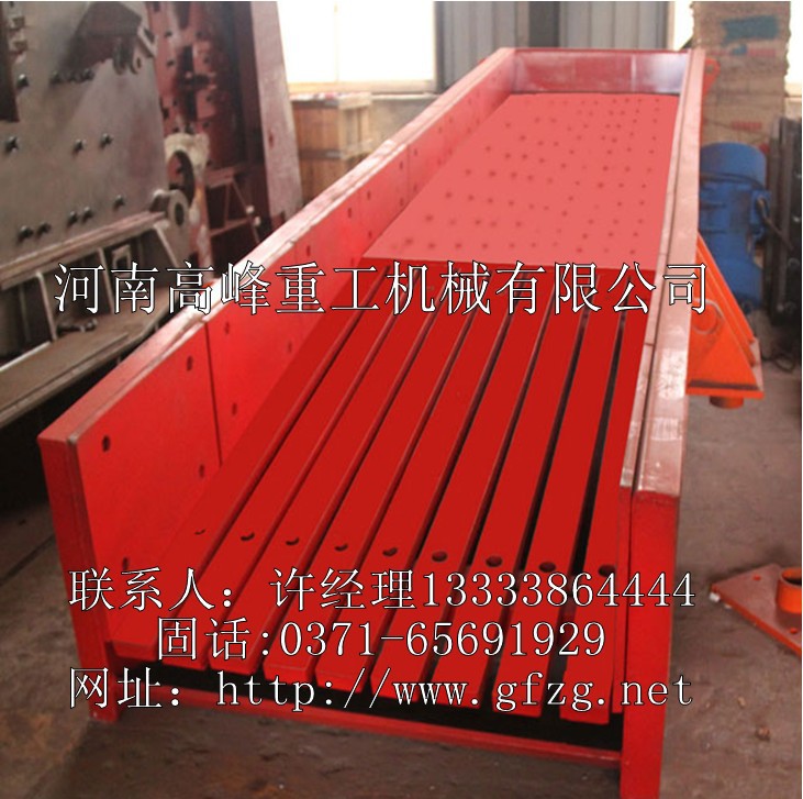 振动给料机结构简单,喂料均匀,连续性能好,激振力可调;振动给料机随时改变和控制流量,操作方便;偏心块为激振源,噪音低,耗电少,调节性能好,无冲料现象;振动给料机采用封闭式机身可防止粉尘污染振动平稳、工作可靠、寿命长;因此已得到广泛应用。振动给料机仓料的有效排口不得大于槽宽的四分之一,物料的流动速度控制在6-18m/min.对给料量较大的物料,料仓底部排料处应设置足够高度的拦矿板;为不影响给料机的性能,拦矿板不得固定在槽体上。为使给料机的喂料仓能顺利排出,料仓后壁倾角最好设计为55-65度。