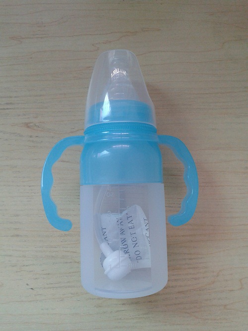 奶瓶瓶口宜大不宜小,便于装奶和清洗。最好买240ML容量的大奶瓶。可以一直用到断奶不需要更换。但要说明一点,240ML,不是婴儿一次应吃的奶量,小于6个月大的婴儿的一次奶量不应超过200ML,大于6个月的婴儿一次最大量不应超过220ML.