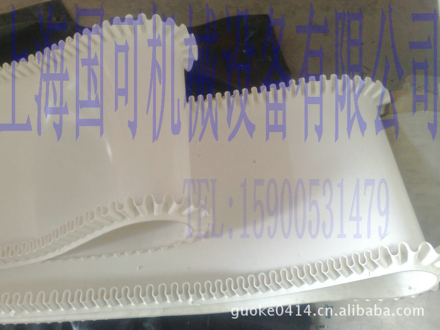 上海国可机械设备有限公司专业生产PVC,PU输送带,特殊加工导条.挡板,裙边等皮带。几层布几层胶按照需求来定制,宽度可以做3米,3米以上(纵接)。上海国可机械设备有限公司生产和销售群边带,平面带,花纹带,加导条皮带,加T型挡板皮带。包边防静电皮带。同步齿形带及各种规格配套、开口带、铁氟龙输送带、三角带、六角带、广角带(水塔带)、多沟带(多楔带/多槽带)、联组带、异形带、变速带、圆带、片基带(平面高速带)、活络带、万能带、龙带、锭带、牵引带、印花导带、皮带张力器、轴承、轴套、联轴器。