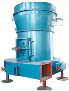 该产品采用国外同类产品的先进结构,并在大型雷蒙磨的基础上更新改进设计而成。该设备比球磨机效率高、电耗低、占地面积小,一次性投资少。磨辊在离心力的作用下紧紧地碾压在磨环上,因此当磨辊、磨环磨损到一定厚度时并不影响成品的产量与细度。磨辊、磨环更换周期长、从而剔除了离心粉碎机易损件更换周期短的弊病。