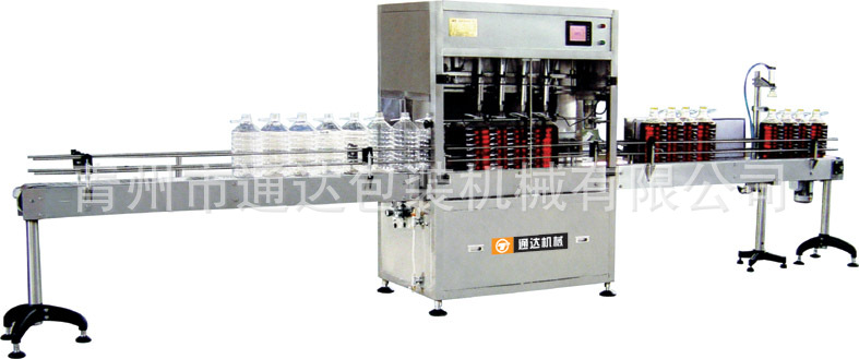 特点:1、人机界面(触摸屏)或数字显示屏,直接设定灌装量2、PLC程序控制,变频器调速直线灌装3、高精度容积式流量计,定量精确可靠4、机械式密封加真空回吸双重防滴漏5、现快后慢双流速高效灌装6、广泛用于各种桶装液体(1-6升),如食用油、润滑油等,各种粘性无粘性液体的定量灌装。主要技术参数:灌装机头数:2-10生产能力:每头100-200(桶/小时)容量范围:无级调速 1-6(升)灌装精度:≤±0.5%FS