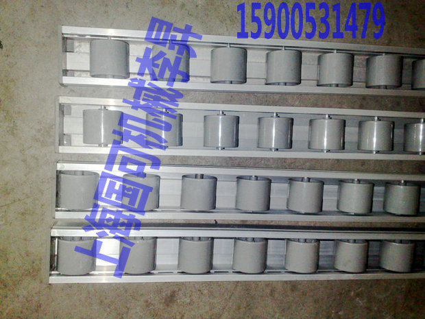 上海国可机械设备有限公司生产铝合金流利条,钣金流利条,铁架带轴承重型流利条:轮距15mm,30mm,33mm,35.5mm,95mm,45mm,49.5mm,50mm,60mm等。轮子直径有13mm,24mm,28mm,33mm,38mm,48mm有带挡边和不带挡边两种。主要用于仓储,货架配套产品,可用作滑道,护栏,导向装置,转达动灵活。主要用于输送,仓储系统配套产品,可用作滑轨、护栏、导向装置,滚动性能好、成本低。滚轮采用高品质的热塑性塑料制成,具有摩擦系数小、抗冲击、寿命长、耐酸碱性、耐潮湿等优点。流利条是用型钢与滚轮滑道组成配套专用货架,广泛应用于工厂的装配生产线和物流配送中心的分拣区域内。流利条是用型钢与滚轮滑道组成配套专用货架,广泛应用于工厂的装配生产线和物流配送中心的分拣区域内,尤其是可与数字式分拣系统结合起来,大大提高物料的分拣配送效率及减少差错。