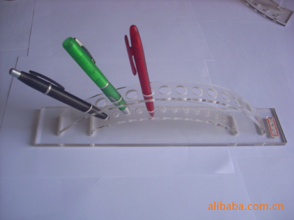 专业生产各种有机玻璃笔架,款式多样,欢迎新老顾客来图来样订做。