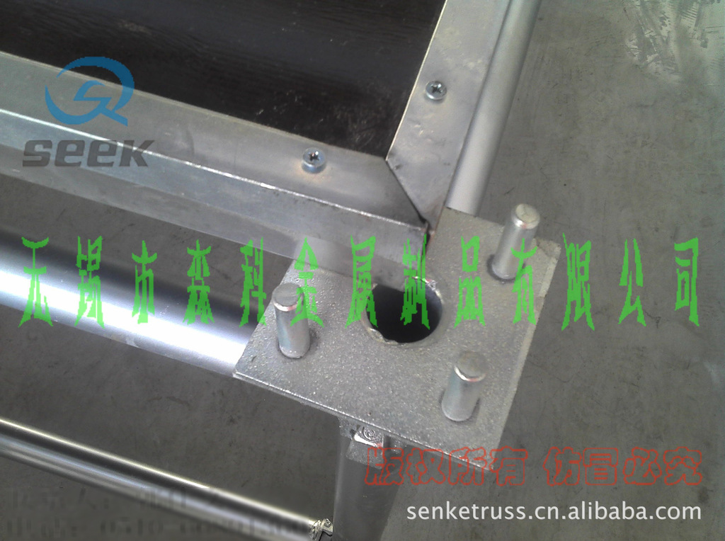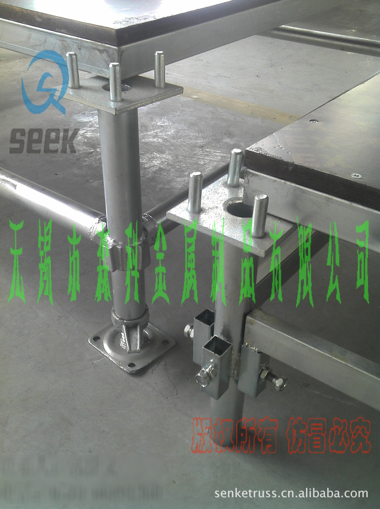 舞台立柱:采用国标Q235脚手架专用钢材,管径42.7mm,壁厚2.0mm,表面镀锌处理。