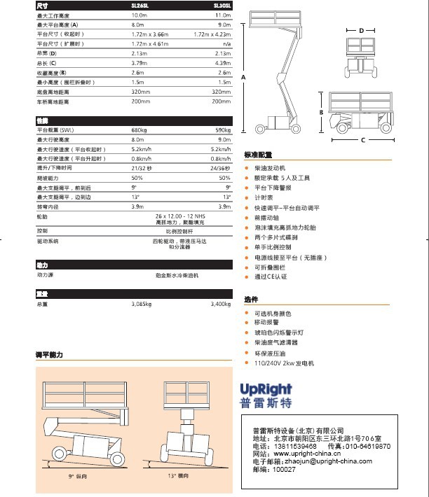 SL30进口升降机,升降平台,高空作业平台要特性:1、安全稳定的11米工作高度