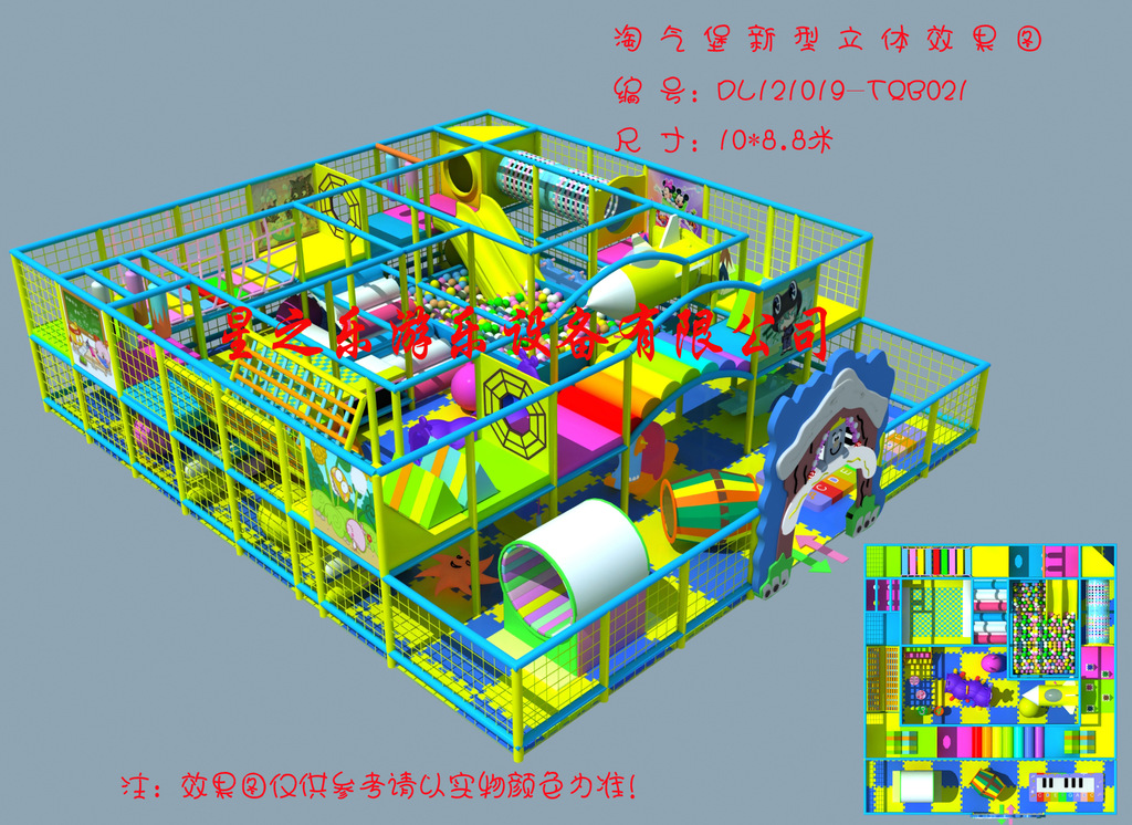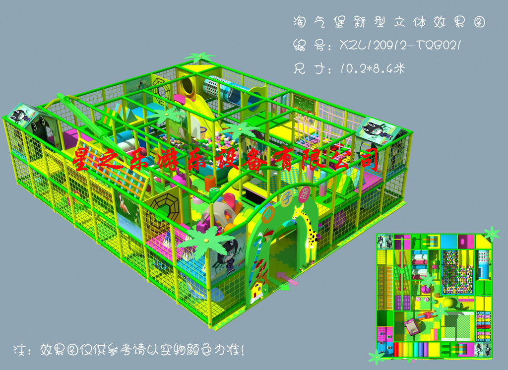 儿童淘气堡,它是一座集跳,爬,钻,滑,荡,滚,摇等多功能为一体的综合性游乐设施。该项目采用大型彩色工程塑料管道,软体积木,滑车,独木桥,海洋球,拳击袋,蹦床等运动器材,既安全又刺激和趣味性,它能充分发挥和培养少年儿童的思维能力和克服困难积极进取的精神,能起到锻炼身体的作用,是少年儿童百玩不厌,十分喜欢的游乐设施。可以根据场地和用户的需求量身制作。我公司主要生产、销售大型淘气堡设备、儿童滑梯系列、健身路径系列、娱教玩具系列及其它游乐设备,公司产品适用于游乐场、广场、公园、幼儿园、商场、餐厅、社区、住宅小区等各类室内外场地