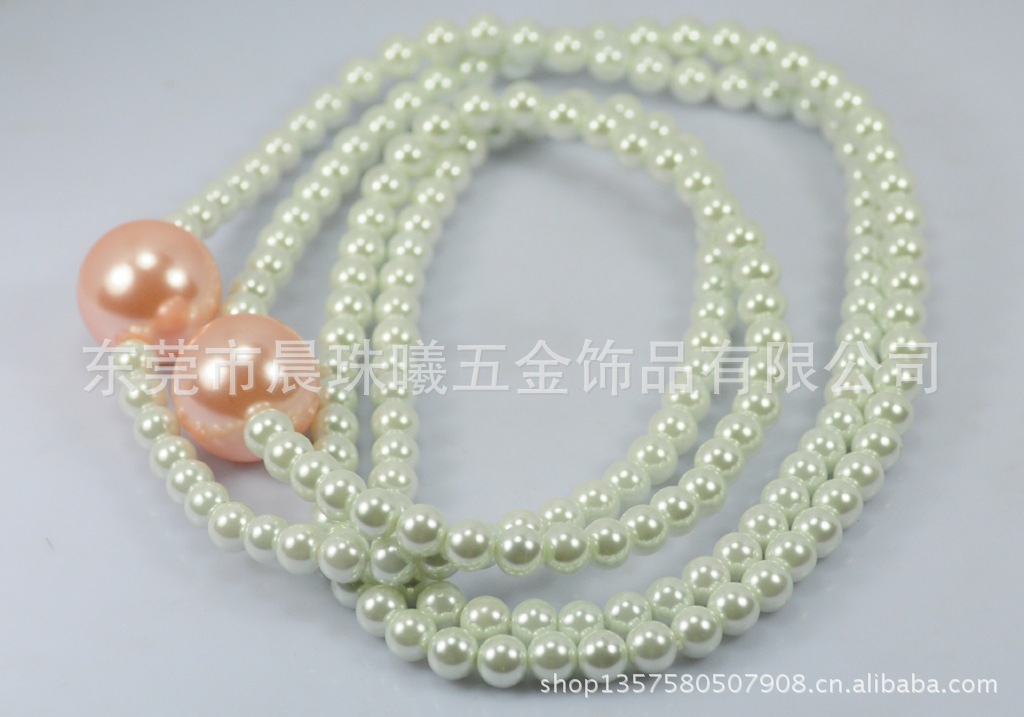 | 东莞晨珠曦五金饰品有限公司 专业生产仿珍珠(贝壳仿珍珠,玻璃仿珍珠,ABS 塑胶仿珍珠) 和仿珍珠饰品(项链、耳环、手链 ,戒指)。 半成品主要有以下类型: 按材质:贝壳仿珍珠,玻璃仿珍珠,ABS 塑胶仿珍珠 按颜色:普通色仿珍珠、亮珠、五彩珠、七彩珠、皱纹珠等 按形状:圆形珠、水滴珠、半面圆珠、半面水滴珠、半面椭圆珠、异形珠 按孔状:无孔珠、半孔珠、全孔珠 首饰主要有:项链、耳环、手链 ,戒指等款式。 无毒,无公害的产品.适用于出口欧洲等对饰品检测严格的国家与地区.采用材质防火材料做成,做工精细,款式新颖,质量可靠,价格合理. 产品主要以外销为主,内销为辅,由于产品质量优良,款式新颖,做工精细、交货及时,一直以来深受国内外客户的青睐。 “质量第一、客户至上”的方针是我公司十几年的服务宗旨,我们竭诚为海内外客户提供优良的产品、 完美的服务、崇高的信誉。欢迎各界各地朋友与我们洽谈,携手合作,共创辉煌!