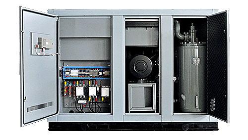由最小压力阀流出的压缩空气,通至后冷却器。后冷却器与油冷却器制成一体,其结构相同,皆为板翘式。冷却风扇将冷空气抽入,吹过后冷却器翘板。冷却后的压缩空气温度一般在环境温度+15℃以下。