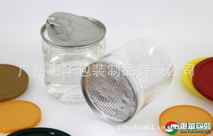 结构:环保PE胶盖+铝合金易拉盖(内有涂黄/注胶使产品密封性更好,且有防划手安全边),罐身采用透明的PET材质。适合装各种干果食品的包装。