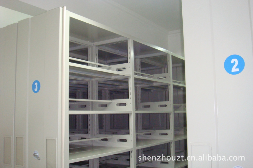 移动密集架是公司根据国家档案局行业标准和图书架国家标准开发生产的,用于机关、企事业单位图书资料室、档案室、样品室等存放图书资料、档案、财务凭证、货物等。对声像计算机硬盘存放,只需另配专用格架即可,与传统式书架、货架、档案柜相比,存储量大,且更有系统性。
