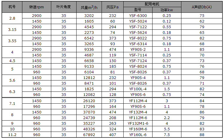 T35-11(T40-11)系列轴流式通风机是我国八十年代在T30-11的基础上改进设计的新型风机它与T30-11风机相比具有明显优点: