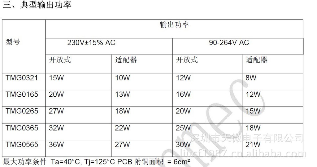 TMG0X65 芯片是一款高集成度、高性能的PWM+ MOSFET 二合一的电流型离线式开关电源控制器。适用于充电器、电源适配器等各类小功率的开关电源。采用DIP8 封装,无需加散热器可输出0~36W 的功率。电路结构简单,成本低。具有完善的保护功能,包括过压、欠压、过温、过载及短路等保护。固定振荡频率及抖频功能,可以降低EMI。待机功率低,在待机时进入跳周期模式,符合“能源之星”等待机功耗标准要求。