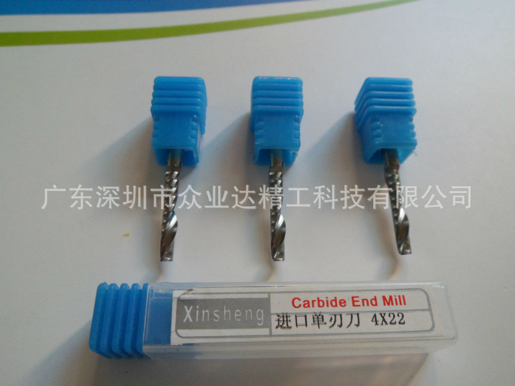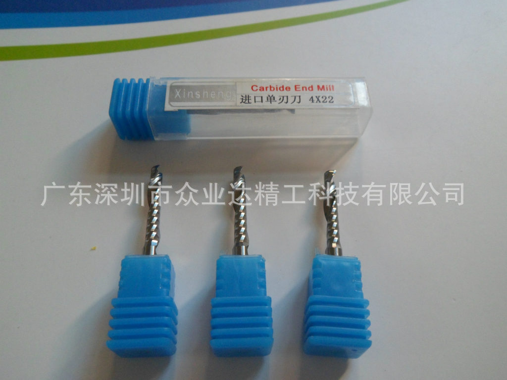 进口单刃刀也称为进口单刃铣刀选用进口硬质合金精磨制造,进口单刃刀、单刃铣刀主要应用于切割和铣底,二维雕刻,刃口锋利,排削好,耐用度高,不易断刀等优势,单刃刀、单刃铣刀主要适用加工压克力,PVC,密度板,木头等材料。