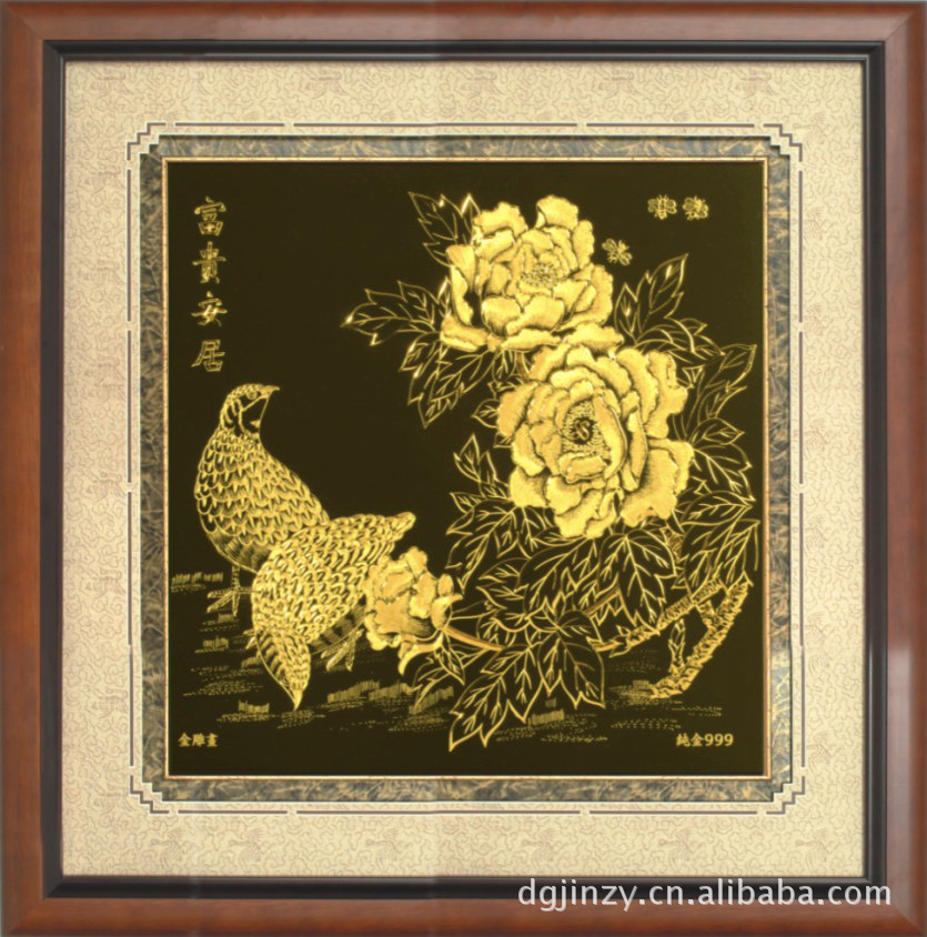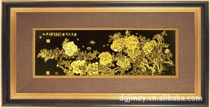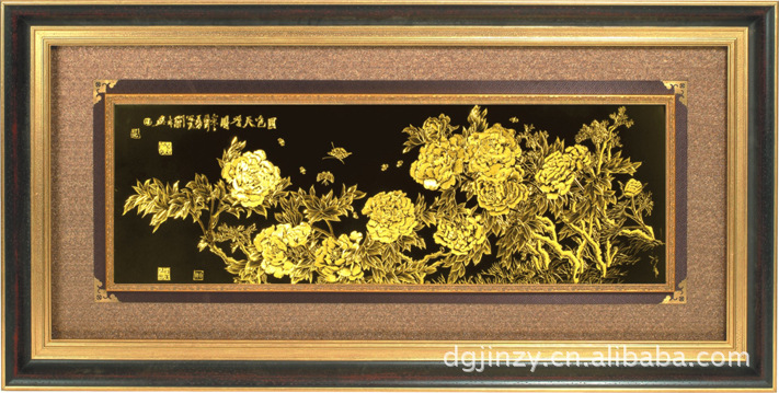 厂家直销东莞市纯手工雕刻金雕画富贵牡丹/高档装饰画