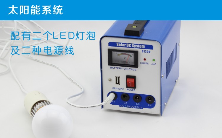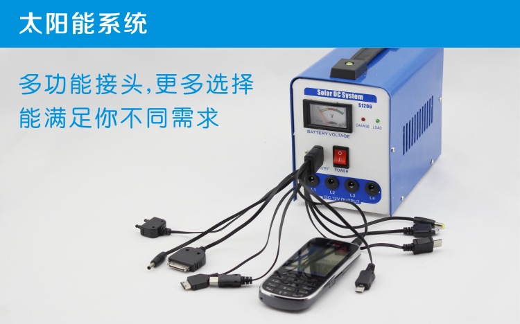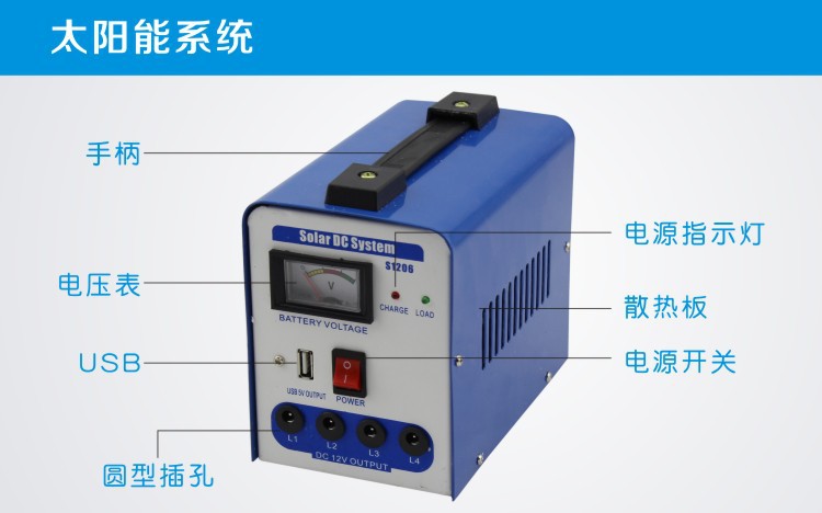 2、采用多晶(单晶)高效率太阳能板,钢化玻璃铝边框压层, 太阳能支架采用不锈制作,时尚美观,坚固实用,可折叠包装,方便携带运输。 3、发电器带电量检测功能,一目了然的电压表,让你随时知道用电状态,确保用电所需。 4、可分为直流输入,输出,还有快充交流输入及输出。 5、傻瓜式输入输出装置,无需安装调试,简单操作,方便快捷。 6、内置大容量免维护蓄电池,交流逆变转换器,外置220V万能开关插口,或直流输出插头,过充过放保护装置和过载保护、高温保护、断路保护等功能。 7、12V+220V双路电压输出,适合VCD机、电视机、风扇、台式电脑、笔记本、微波通信站、数据采集站和手机充电等家庭等电器使用。 8、太阳能家用轻便发电器,静音无声、防震防尘、绿色能源、环保健康,是无电地区的必备之品。 9、开启电流较大的电器请选择本厂其他大功率的发电产品。(详细资料请看其他太阳能发电器参数) 10、不做垃圾产品,质量绝对有保证,可按客户要求设计不同功率不同款式的太阳能发电装置,本公司成熟产品最大可做到60KKW系统。 |