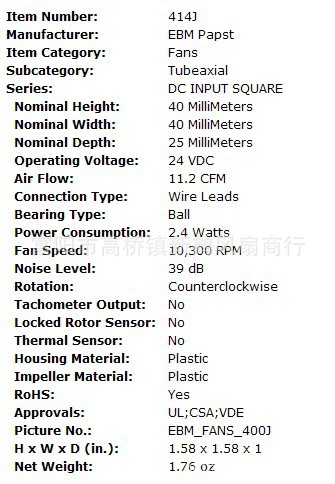 专业生产销售AC散热轴流风机、DC散热轴流风机、CPU风扇、CPU散热器、DC鼓风机、离心式风机(鼓风机)、横流扇、耐高温风机、高压风机、风机零配件、轴承、风机金属网罩、塑胶网罩、冷却风机、外转子风机、、防尘网罩、并经营进口NMB、PAPST、TOBISHI、SONYO风机,cY系列多翼式离心风机各类机械专用等系列风机的公司。产品的特点:风量大,振动小,外观精美,工艺精湛,产品服务于:印刷设备,橡塑设备,包装设备,烤箱设备,电子设备,食品设备,取暖设备等多个行业的广泛应用,产品有服务于国外的部分公司的OEM合作,远销台湾,香港,东南亚,欧洲等国 系列产品的专业公司。产品质量和各项技术性能指标均达到世界先进水平,符合美国、加拿大、欧洲等国际标准,居国内同类产品之首,具有外形美观,结构紧凑,加工精致,风压高,风量大,重量轻,厚度薄,噪音低,寿命长,环境适应性强,价格低,可靠性好等特点,广泛应用于电脑、电源、仪器仪表、灯光音响、空调、汽车、室内通风、电梯、焊接设备、工业设备、医疗设备 公司秉承着“不断创新,服务至上,质量立足”的经营理念“优质,快捷”的服务理念先后与多家公司建立了长期稳定的合作关系,并且得到了广大客户的一致好评!