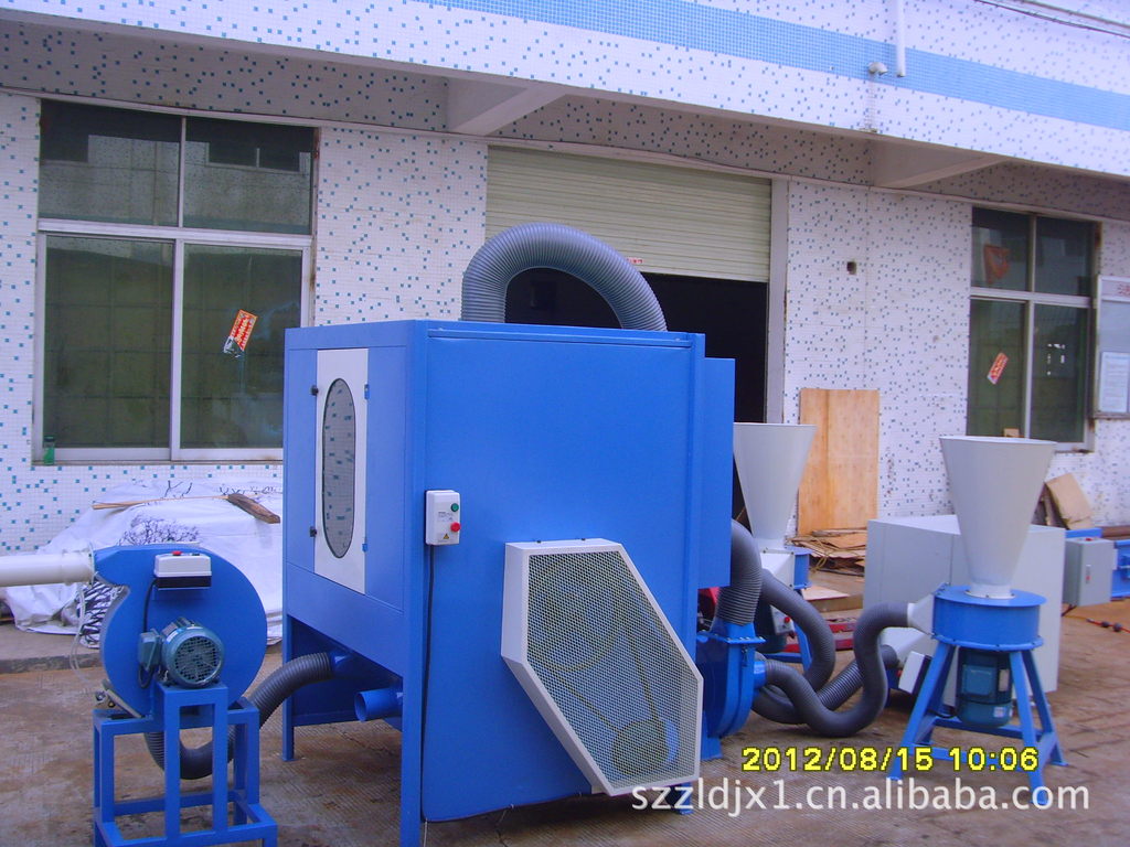 只要通过一次性开松,普通纤维棉开松率达99%以上,三维螺丝棉开松率可达95%以上.并可以混合添加其他短纤维如碎海棉,羽毛等,产量大,效率高,很适合于沙发厂,床上用品厂,玩具厂,家纺制衣厂等生产加工纤维棉并均匀地填充到布套里.