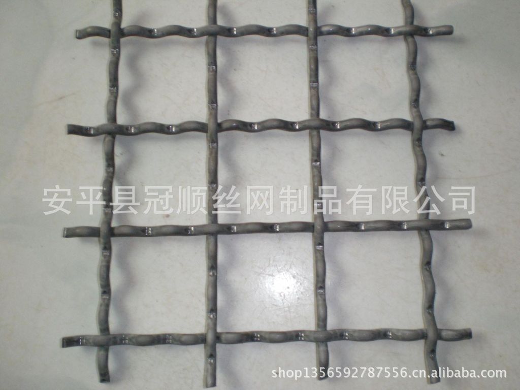 编织方法:轧花网采用先压弯后成型的编织方法,其中包括:双向隔波弯曲、平顶弯曲、双向弯曲、紧锁弯曲、先轧后编。