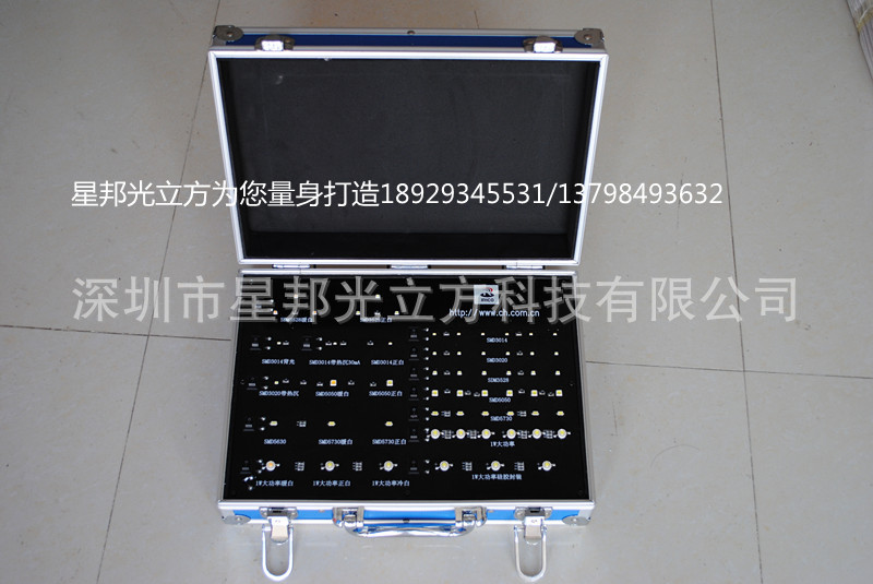深圳市星邦光立方科技有限公司 LED展示测试箱是随着LED照明发展趋势孕育而生,节能和环保是当今倡导的主题和发展趋势,LED照明也就顺应了这种趋势,为了能让LED照明企业产品得到更好推广和展示!我司的LED移动展示箱(品牌: 星邦.光立方)经过市场的洗礼,工艺和制作技术都达到一流水平,得到了客户的高度的认可和赞扬,我们本着做精做细的原则不断改进我们的工艺和每一个微小的细节,使产品的质量超乎客户的想像,我们绝对不做粗制滥造和还过得去的产品,要做我们就做好,让客户满意是星邦.光立方永恒的追求! LED移动展示箱 专为LED企业出席或参加国内外各种展览、现场洽谈和演示等商务活动而精心设计的移动LED工具箱。展示箱设计新颖、美观大方、外形高档,抗挤抗压、功能强大、体积小携带方便