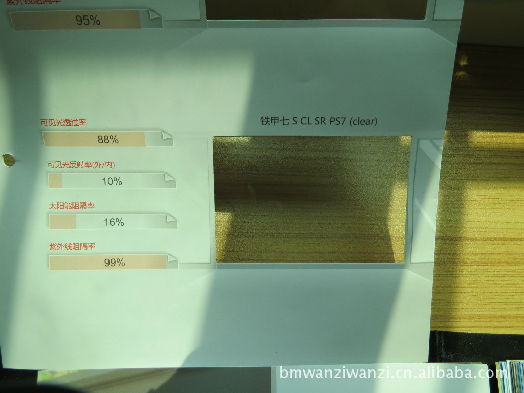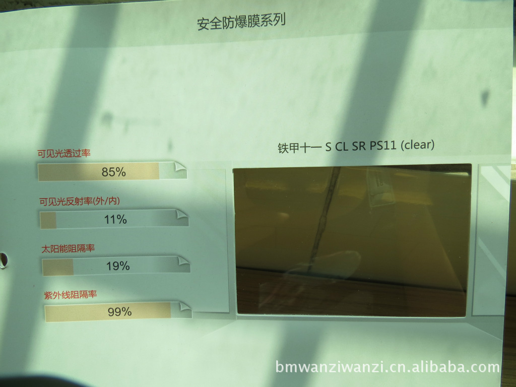 透明安全的型号。可将普通浮法玻璃提高到安全玻璃的性能等级,达到国标的抗冲击性能要求。全面提升公共部位各种玻璃门窗、幕墙、走道玻璃、天棚玻璃的安全性能。贴安全膜是使不安全玻璃达标的最便捷方法。