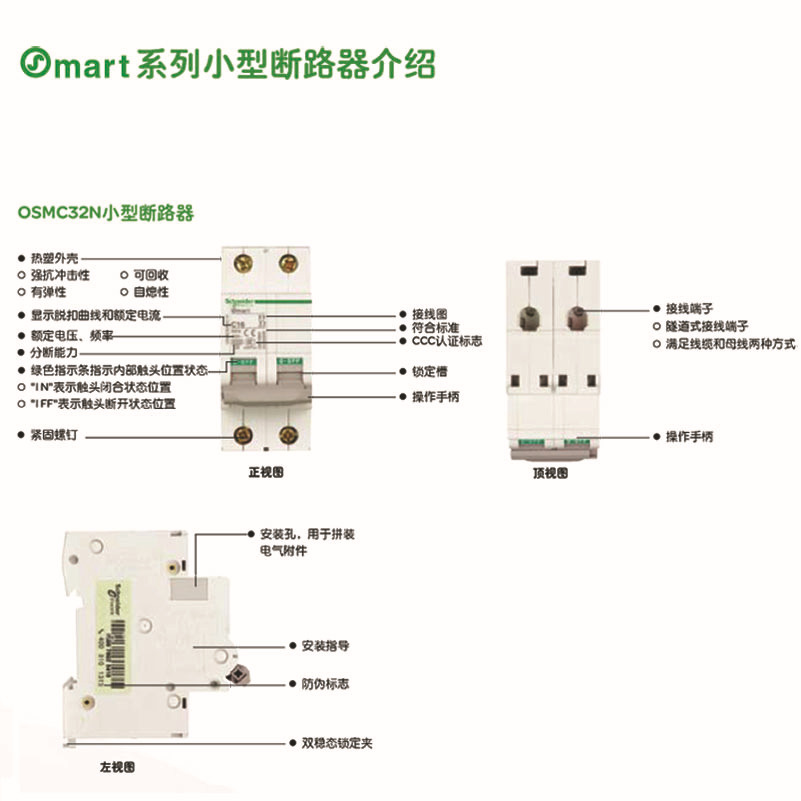 - OSMC32N/C65H小型断路器能为OEM客户提供最好的低压配电产品解决方案和服务,主要用于OEM各种工业设备和工业控制柜的保护,不适用于建筑领域低压配电系统的保护。