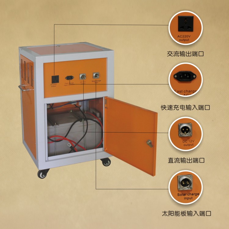 2、采用多晶(单晶)高效率太阳能板,钢化玻璃铝边框压层, 太阳能支架采用不锈制作,时尚美观,坚固实用,可折叠包装,方便携带运输。 3、发电器带电量检测功能,一目了然的电压表,让你随时知道用电状态,确保用电所需。 4、可分为直流输入,输出,还有快充交流输入及输出。 5、傻瓜式输入输出装置,无需安装调试,简单操作,方便快捷。 6、内置大容量免维护蓄电池,交流逆变转换器,外置220V万能开关插口,或直流输出插头,过充过放保护装置和过载保护、高温保护、断路保护等功能。 7、12V+220V双路电压输出,适合VCD机、电视机、风扇、台式电脑、笔记本、微波通信站、数据采集站和手机充电等家庭等电器使用。 8、太阳能家用轻便发电器,静音无声、防震防尘、绿色能源、环保健康,是无电地区的必备之品。 9、开启电流较大的电器请选择本厂其他大功率的发电产品。(详细资料请看其他太阳能发电器参数) 10、不做垃圾产品,质量绝对有保证,可按客户要求设计不同功率不同款式的太阳能发电装置,本公司成熟产品最大可做到60KKW系统。