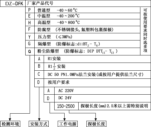 【DZ-DFK型号编制及说明】