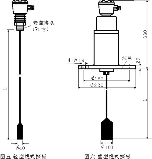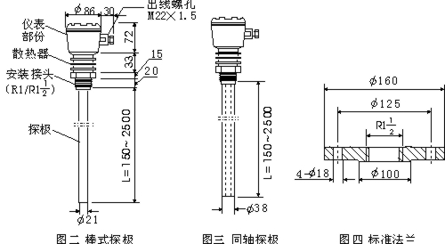 1. 本物位开关的探极长度可根据现场需要选用,在 150~2500mm 之间时,应选棒式探极,超过此长度,液体物料可用轻型缆式探极;固体物料可用重型缆式探极。