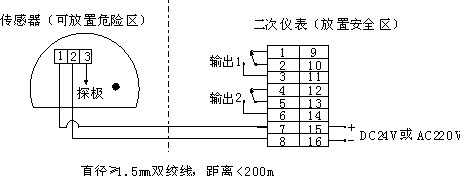 传感器放在危险区,二次仪表必须放在安全区!