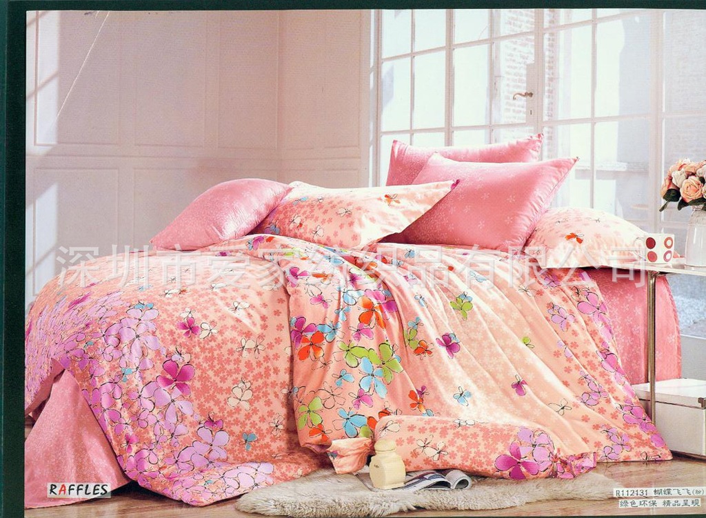 2、除了较特殊的材质以及注明不能水洗者(如真丝),一般而言,洗涤程序为:先将中性洗涤剂倒入洗衣机的水中,水温不要超过30℃,待洗涤剂完全溶解后再放入床上用品,浸泡的时间不要太久。因为使用碱性洗涤剂或水温太高或洗涤剂没有平均溶解或浸泡太久都可能造成不必要的褪色情形。同时,清洗时浅色产品要与深色产品分开洗涤,避免互相染色。清洗后在室外通风处晾干即可,若要使用烘干机,请选用低温烘干,温度不要超过35℃,可以避免它过度缩水。 总之,清洗前应仔细阅读有关产品的洗涤说明,有装饰附件的产品洗涤前一定要注意把花边、坠子等先取下,避免损坏。