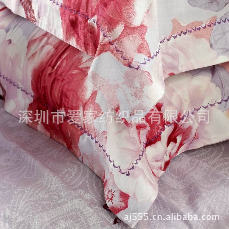 【产品构造】: HSTS AB版天丝床上用品四件套,被套枕套二面100%天丝,床单100%天丝 :床单荷叶边带花边,枕套月牙绣,被套反面锁边,被角绑带.