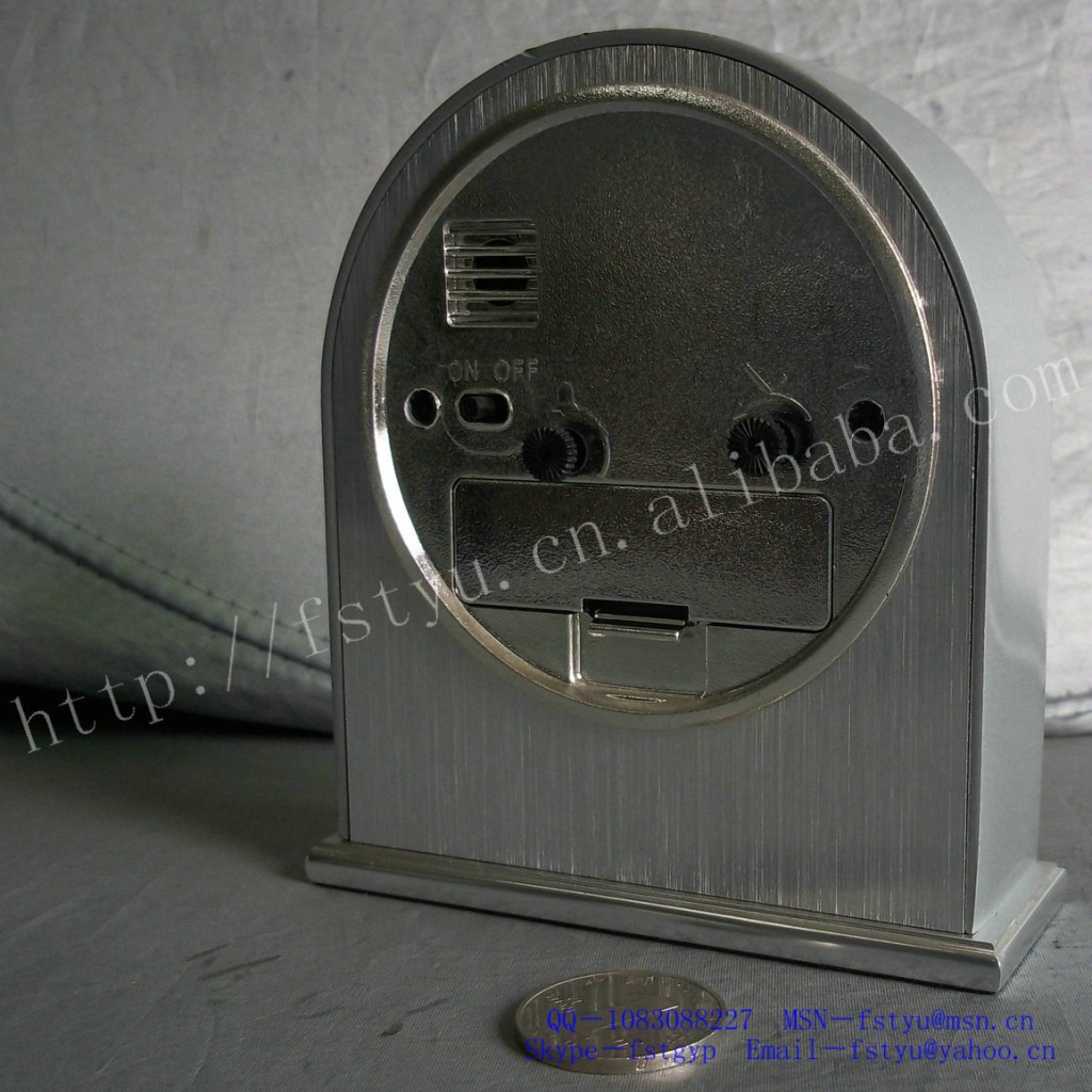 | 供应压铸工艺锌合金座 带灯萤光钟面 闹铃静音扫秒机芯方形金属钟 |