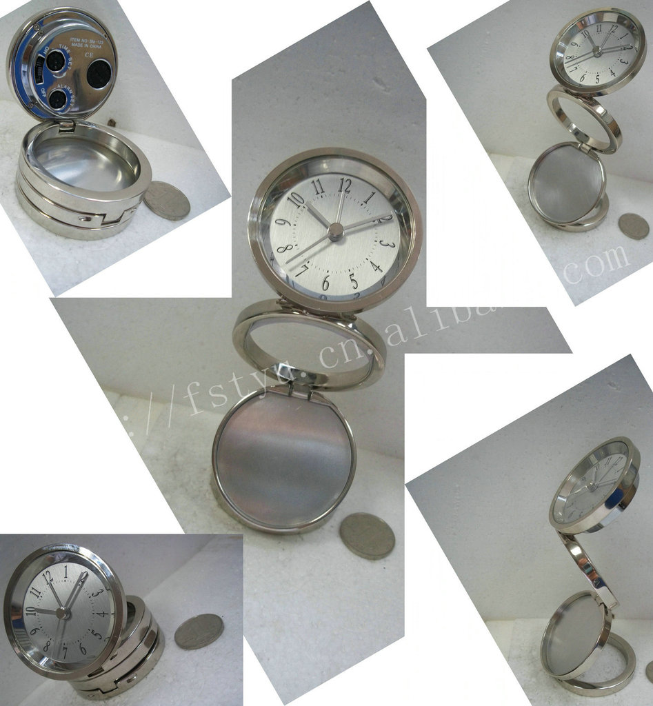 | [金属钟表厂批发] 时尚创意响闹金属四环圆形(折叠)台钟 |
