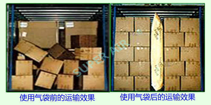 在集装箱海运、陆运(货车、火车)、空运中,填充气袋能有效地保护运输途中的货物,避免其倾倒、相互碰撞,起到缓冲、防倒塌效果。