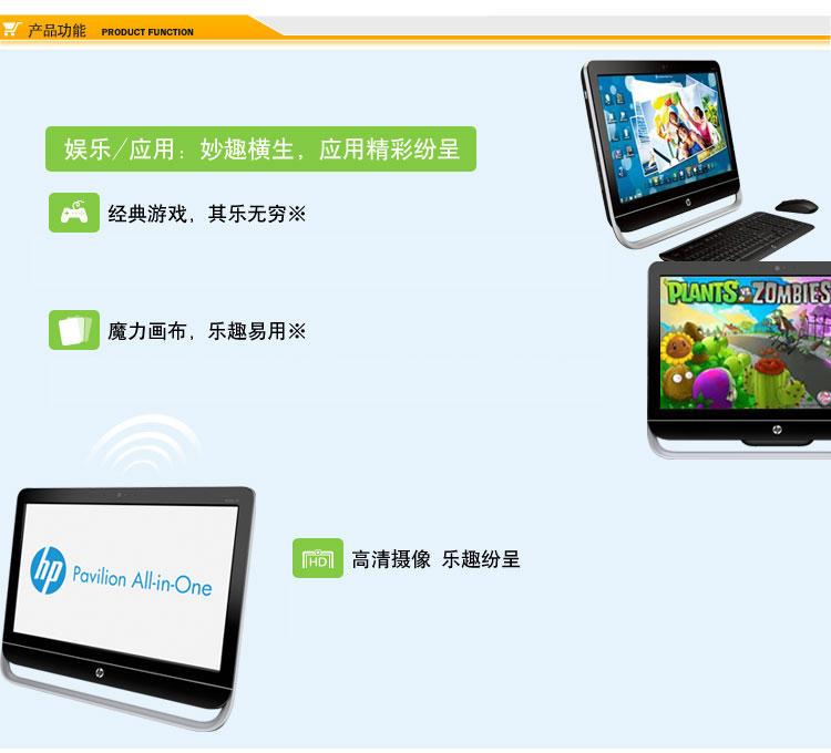 惠普是惠普最新推出的一款简约时尚家庭式一体电脑,采用桌面友好的画架设计,极致轻薄。 可以轻松的调整到最适合您的视角,在完全舒适状态下执行多任务或轻松娱乐,它采用了23英寸WLED防眩光大屏幕,分辨率高达1920x1080像素,且配上nVidia GeForce GT610M独立显卡,将为你实现前所未有的震撼视觉体验。