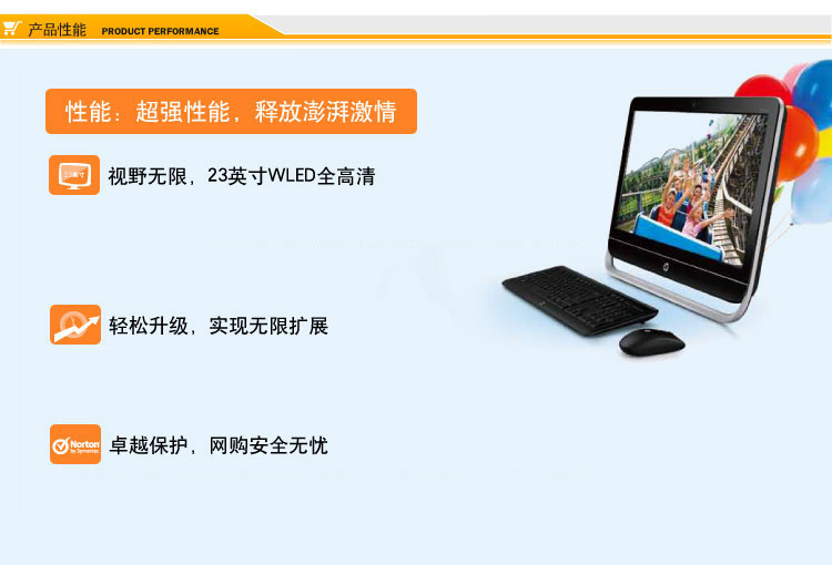 惠普(HP) 23英寸一体电脑(i3-2120 4G 500GB 1GB独显 SuperMulti 无线键鼠 无线网卡 Win7 HB)