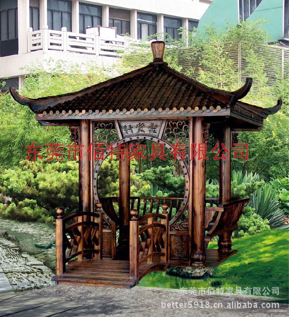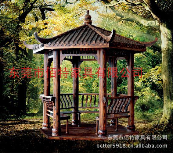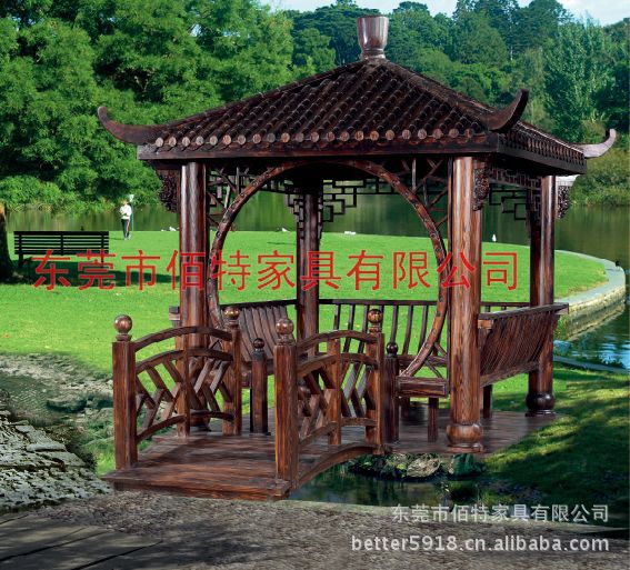 东莞市佰特家具有限公司一家专业设计和生产实木中欧式凉亭、木制凉亭、四角凉亭、六角凉亭、八角凉亭、仿古亭子、园林景观凉亭、别墅凉亭、休闲凉亭、杉木凉亭、铁杉木凉亭、柚木凉亭、防腐木凉亭、碳化木凉亭、建筑凉亭等等、酒吧、长廊、茶楼等仿古系列产品的公司。本公司在吸取大量古典家俱艺术精髓的基础上,将西班牙古典家俱的创意风格与悠久的中国古典家俱艺术完美结合,众多的能工巧匠将原始森林的上乘原木,采用先进的复古工艺技术和真空防腐处理,辅以完美环保先进的碳化喷涂工艺,使创作的每件作品都才隽横溢、个性鲜明、极具古朴典雅的艺术气息。真正做到天然实木,自然品质,绿色环保。典雅的外形,经久耐用的品质是您的最佳选择。我们佰特家具将以周到、完善的售后服务和诚信的经营理念,来满足广大客户的最大需求。