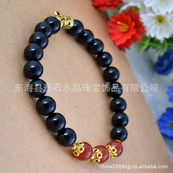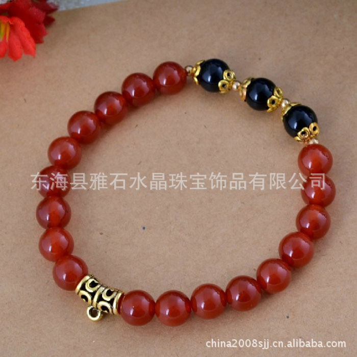 【名称】天然黑玛瑙红玛瑙6-12mm佛牌链手串 佛链手串 情侣款
