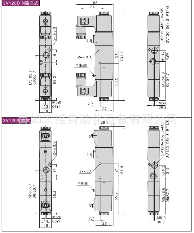 五口二位/五口三位电磁阀4V100系列: