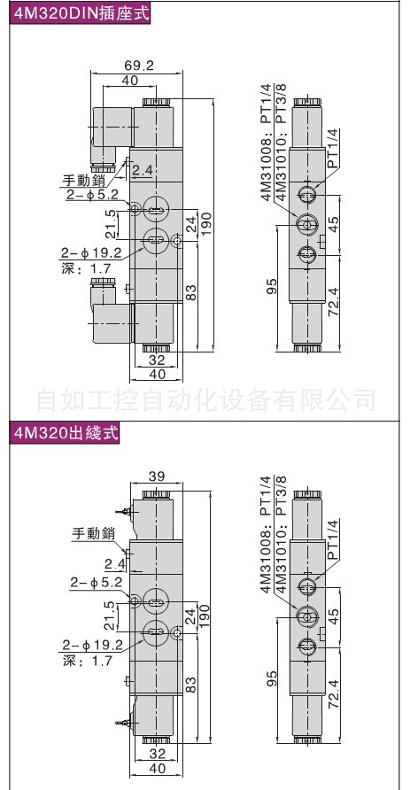 五口二位/五口三位电磁阀4M200/300/400系列: