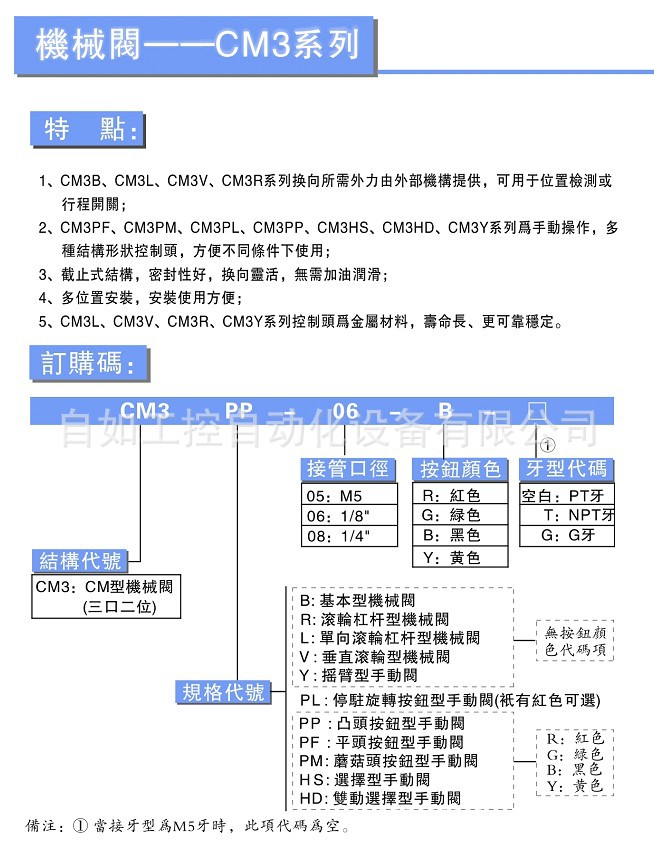 (2)气动液压:气缸、三联件、电磁阀、减压阀、过滤器、油雾器、传感器、消音器、球阀、蝶阀、各类气动手动阀门、定位器、管件、快速接头、PU管、尼龙管、特氟隆管等。