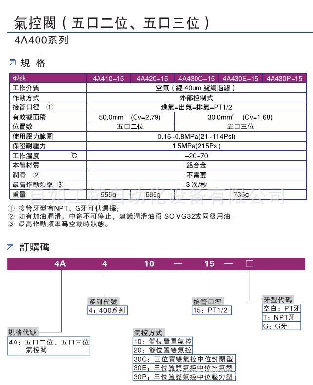 五口二位/五口三位电磁阀4M200/300/400系列: