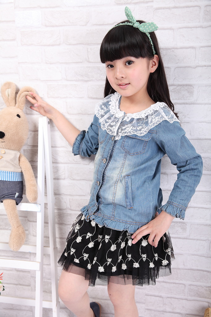 现货 春季新款 韩版 中大童 蕾丝领边 女童 牛仔 儿童 外套 批发