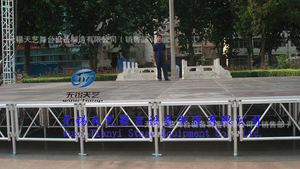 无锡天艺舞台设备制造有限公司是一家经过工商认证的有限责任公司,专业生产舞台,桁架,铝合金桁架,铝合金舞台,快装专利舞台,脚手架,灯光架,雷亚架,折叠舞台,玻璃舞台,合唱台等各种展览器材的制造研发和销售。公司位于国家级经济开发区 ,芙蓉工业园区A区蓉洋三路 32-1号,无锡东出口处8公里即可到公司,东临上海、西靠南京、北枕长江;周边与江阴、张家港、常熟等国家卫生城市紧邻,交通便捷、人杰地灵。