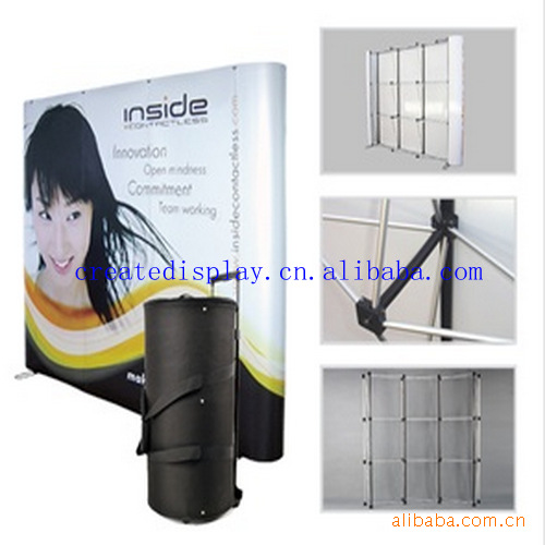 拉网展架 从材料上分成铝合金和铁管,根据客户不同的需求品质要求,铝合金相对高档一些,铁管的相对中低档一些。
