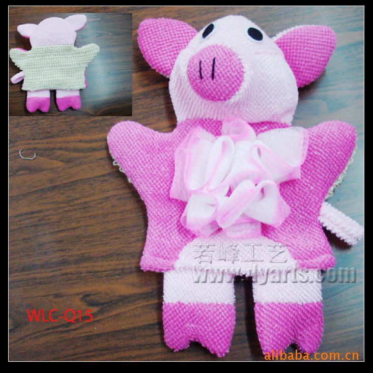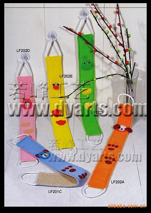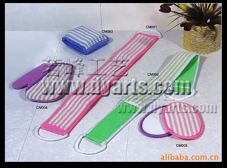 我厂沐浴类产品是现代人日常洗澡中必不可少的洗涤用品之一,此类产品颜色鲜艳,款式多样,手感柔软而且富有弹性,可按客人来做设计,如配合沐浴露或香皂使用,可迅速产生泡沫,有效清洁皮肤,促进血液循环,令人倍感舒爽!