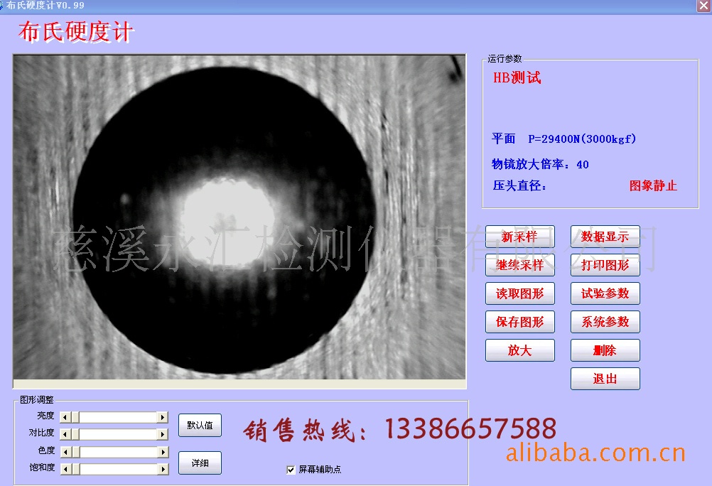 计算机自动或手动测量,图象分析,硬度软件修正和梯度图示。也可目镜测量。输出测量数据,图象,金相图形,及硬度梯度图,可打印或保存..简介:该机是电脑微机自动测量系统与硬度试验计相结合的硬度试验计。该电脑微机自动测量系统可配各种型号硬度计。技术性能:*采用高分辨率图像采集装置将压痕清晰地显示在电脑屏幕上。*图像清晰度:》500线。*支持PAL线NTSC彩色/黑白两种视频输入。*通过软件对信号的转换,自动测量出试验压痕的硬度值。*可以对显微维氏、克努普、渗碳层、氮化层等进行试验。*硬度值可以进行多种形式的自动转换。*对压痕图像可以进行对比度、光亮度等的调节。*对于光洁度不好的试样所得的压痕可以进行边缘检测操作。*压痕可以2×、3×、4×的放大,以便更好的测量出试验值。*对图像文件和数据文件可以分别作打开、存储、打印等处理。*能随时查看数据文件和图像文件,数据文件采用表格和曲线的形式打印。*根据需要可以选择高倍或低倍物镜。*支持WIN9X、WIN2000、WINXP等操作系统。可配置于401MVA,402MVA,HX-1000,HV-1000, HXS-1000等各种维氏/努氏硬度计.