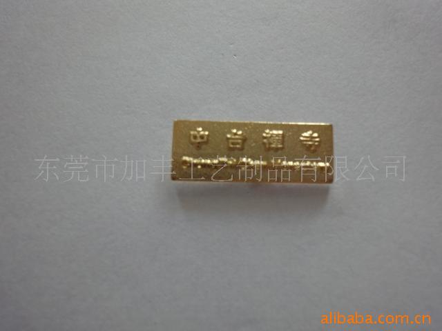 主营产品介绍:本公司专业生产纪念章、纪念盘、徽章(景泰蓝、珐琅、仿珐琅、烤漆滴胶、贴纸滴胶、不干胶等工艺徽章) ; 校徽、胸章、钥匙扣、领带夹、奖章、运动章、标牌、铭牌、证章、袖扣、金属商标等各种金属工艺品。 优良的品质:精细的雕刻,先进的表面处理工艺技术,各种工艺效果的合理搭配,精益求精的工作态度,从而能充分的保障优良的品质! 东莞市加丰工艺制品有限公司,位于东莞市凤岗镇毅力工业园,专业生产各类金属工艺制品的企业,拥有先进设备及专业技术,占地面积达5000平方米左右,员工130余人,有着在大型五金厂的技术骨干组成的领导班子、有着丰富的生产、管理经验及开发人员30余人,不断地创新产品于满足客户的不同需求,颇受到广大客户的好评和信赖。。主要制做工艺有:腐蚀、压冲、压铸、丝印、烤漆、滴胶、仿珐琅、真珐琅等工艺.本公司的宗旨:依靠质量,拓宽市场,优质服务,取信用户。我们的经营理念是:诚信、负责和交货迅速。欢迎各大企事业单位团体、国内外客户来图来样订做,数量不限。请随时来电、来函或亲临本厂参观指导。我们的承诺:以客户为导向,制造出具有市场一定竞争力的高品质、好服务、低价格的产品,达到双赢共识.