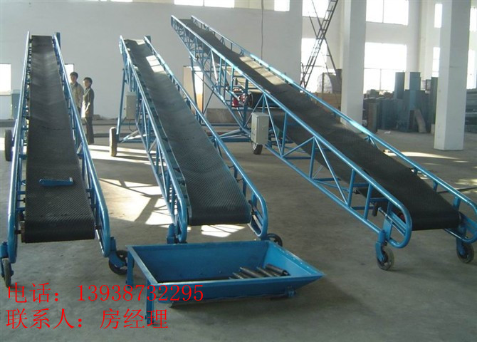 新乡宏源振动设备有限公司特质生产的DY型移动式胶带输送机是一种工效高,使用,机动性好的连续输送装卸设备。主要用于装卸地点经常变更动的场所,如:港口、码头、车站、煤场、仓库、建筑工地、沙石料场、农场等,用来短途运输及装卸散料或单件重量100公斤以下的成件物品。DY型移动式胶带输送机分为可升降型及不可升降型两大类,输送带的运行靠电动滚筒驱动,整机的升降与运行均为非机动。